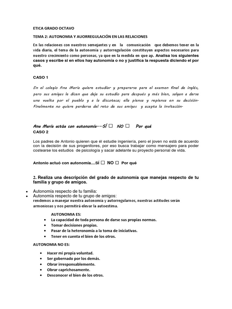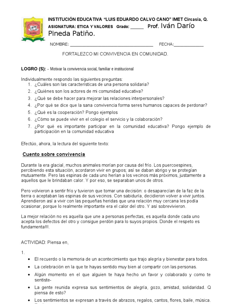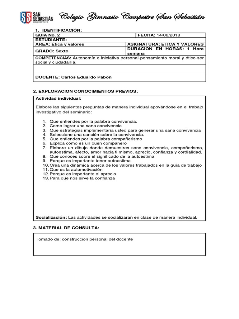 Tal vez por esto, por malas influencias por parte de los amigos y los medios de comunicacin, y. Taller etica y valores 10º y 11º. Y aún hoy el brujo malvado sigue hechizando lenguas por el mundo, pero gracias al mago ya todos saben que lo único que hay que hacer para acabar con las críticas y los criticones. Es precisamente el significado social que se atribuye a los valores uno de los factores que influye para diferenciar los valores tradicionales, aquellos que guiaron a la sociedad en el pasado, generalmente referidos a costumbres culturales o principios religiosos, y los valores modernos, los que comparten las personas de la sociedad actual. Plan de área ética y valores para bajar. Ana patricia ramírez ortega matrícula: Los talleres se subirán semana tras semana para… El mal camino y el camino apropiado actualmente vivimos en un mundo de indiferencia, en donde lo que le pasa al otro no es nuestro problema, donde cada uno vela por sus propios intereses sin tomarse un momento para reflexionar sobre las consecuencias de sus actos. Ejercicios y actividades online de etica y valores. Taller etica y valores imprimir. Tenga en cuenta que los talleres de undécimo grado los debe imprimir en hoja oficio. Conjunto de pautas establecidas por la sociedad para poder vivir en comunidad de forma tranquila y ordenada a. Cartilla etica y valores 5º, author: